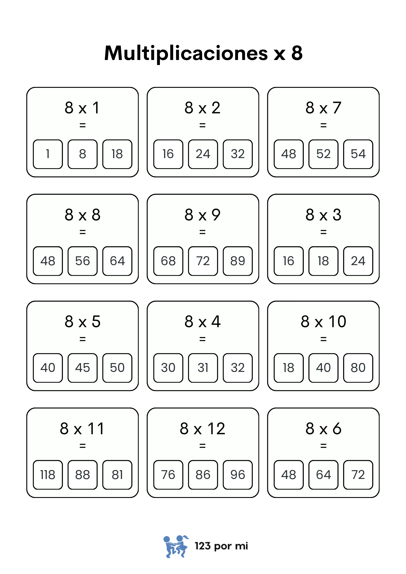 Multiplicaciones x8 123pormico Cognitivo, Desarrollo mayo 10, 2025febrero 7, 2025 1 minuto DescargarDescarga Comparte esto: Haz clic para compartir en X (Se abre en una ventana nueva) X Haz clic para compartir en Facebook (Se abre en una ventana nueva) Facebook Me gusta Cargando... Relacionado Publicado mayo 10, 2025febrero 7, 2025
