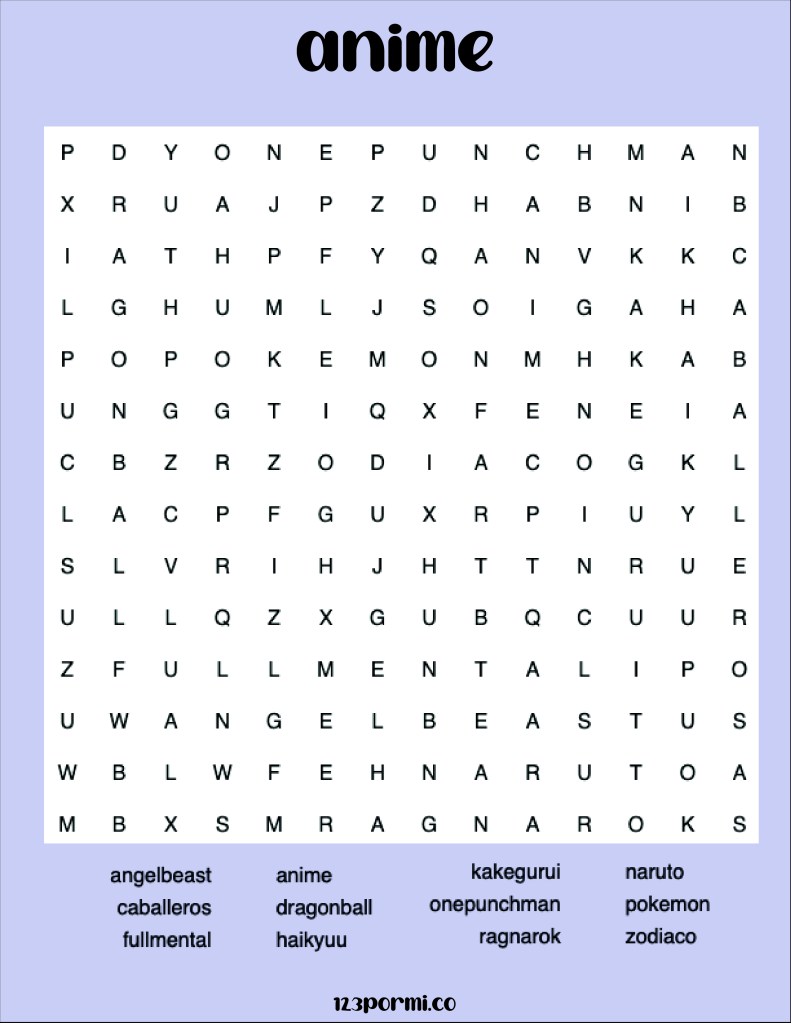 Sigue leyendo «Los animes más vistos»Sopa de letras